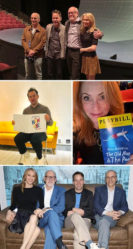 - In Oct, after Mike’s performance of The Old Man & The Pool: (left to right) the brilliant Seth Barrish, who developed and directed the show with Mike, Mike, Frank (my husband), me.